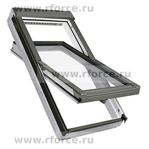 Мансардное окно с поднятой осью поворота створки - ось поворота размещена в 3/4 высоты окна.